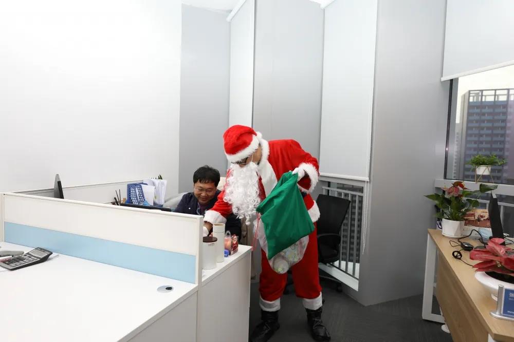 圣诞老人带着大包的礼物而来,为还在加班的小伙伴们送上节日礼物。