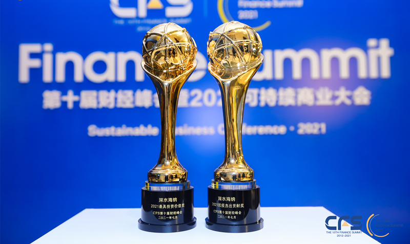 本次奖项的遴选,由评审委员会依据创新、责任、影响力、成长性、前瞻性等多个指标综合评估,评选出在未来经济中有引领作用的企业。深水海纳从众多优秀企业中脱颖而出,荣获“2021最具投资价值奖”和“2021抗疫杰出贡献奖”两项大奖,这是业界对深水海纳的经营业绩、用户口碑、行业影响力和社会责任的高度认可。